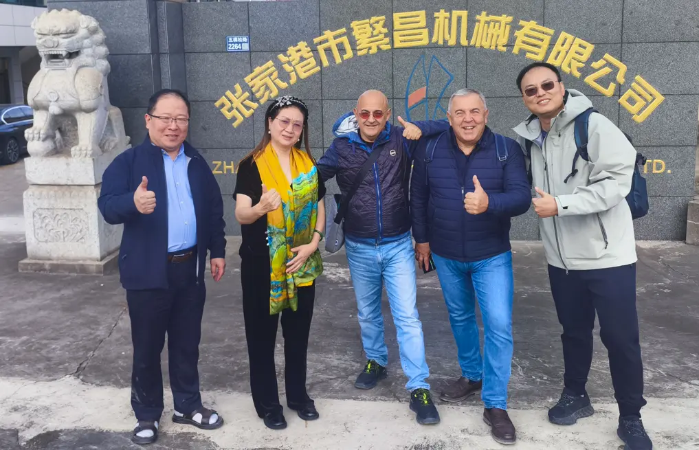 Pada tahun 2025, syarikat Itali LAMPLAST SRL membeli dua unit campuran sejuk dan panas automatik sepenuhnya SRLW-1300/5000 daripada syarikat kami. Foto menunjukkan dua bos syarikat ini sedang memeriksa produk siap di kilang kami.